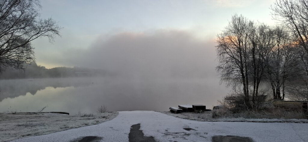 Vigdarvatnet i frostrøyken. FOTO: Ole Harald Ellingsen