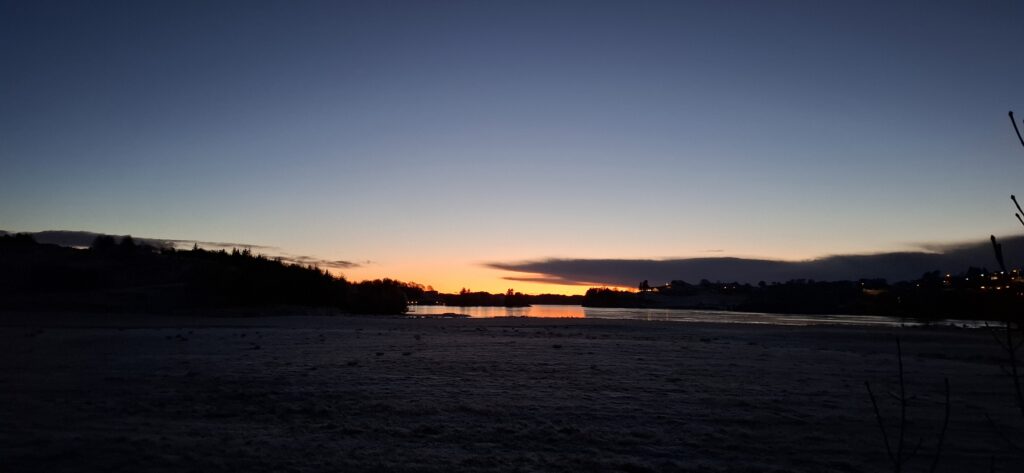 Vigdarvatnet venter på soloppgang 9. desember. FOTO: Ole Harald Ellingsen