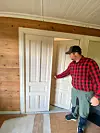 Ein ny vedomn er alt komen på plass i stova. Den gamle skorsteinen har fått eit nytt fleksibelt stålrøyr inni seg og ny feieluke på loftet òg i kjellaren. Tore forklarar at med feieluke på loftet vil dei unngå at feiaren må på taket for å feia nedover i pipa. Dermed blir det heller ikkje krav om montering av stegjern på taket. Gjennom luka på loftet kan feiaren jobba både oppover og nedover. Sotet blir henta ut gjennom luka i kjellaren.