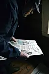 Tømra er kledd med papp. På eine veggen heng eit bilde av Valestrand kyrkje, eit religiøst trykk, og under der igjen eit portrettfoto av Anna, Svein si bestemor.