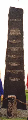 Her står og Demandius M. Dommersnes og Jens Jenssen Årvik, som begge vart fødde i Sveio. Støtta står ved Vikebygd kyrkje.
