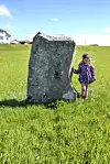 Frode Tangen Jacobsen (45) ser konsentrert ned i bakken. Tett bak svinsar dottera Kaja, tydeleg oppteken av jord og grastuster ho også. «Den som leitar, han finn», blir det sagt, og det gjeld ikkje minst for dei som leitar med metallsøkar.Saka var på trykk i Sommarvind 2015.