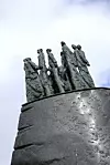 Det vakre minnesmerket – laga av kunstnaren Arne Mæland frå Os, står like til høgre før me kjem til fyret. Det er godt synleg med sjøen som bakgrunn, og på minneplata i nærleiken står namna på dei 16 som mista livet i «Sleipner»-forliset 26. November 1999.Foto: Irene Flatnes Haldin
