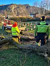 For at hengeasken skulle frå ein verdig avslutning etter å ha stått på staden i 175 år fekk me eigar av Blytt Landbruksservice, Henrik Blytt og faren Andres, til å stå for arbeidet. Dei begge er sterkt knytt til Einstadbøvoll gard. Dei to var dei rette til å setja punktum for dette flotte treet som har stått som ein bauta i glede og sorg gjennom mange generasjonar. Så får me glede oss over dette vakre treet som nå er historie og ha det som eit godt minne. Eit nytt tre vil bli planta til våren, der me har vore så heldige å fått eit hjartetre av Sunnhordland Planteskule, dette hjartetreet vil høva godt på same staden.