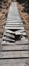 I vinter då eit tynt lag snø dekka nemnde farlege hol, gjorde eg staden synleg for at ikkje nokon skulle koma til skade. Etter at Dagsturhytta vart sett opp har det vore stor slitasje på stien, og ikkje minst på dei to bruene. Gjennom åra har det vore skifta noko plank. Kven skal ta ansvar for ei oppgradering av farlege bruer når Sveio kommune – som trass alt er ansvarlege for Dagsturhytta- framleis ikkje finn det viktig nok å tenka sikkerheit?