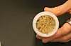 – Han er ikkje til plage, seier ho og heller nokre individ frå flaska utover bordet ved sida av potta med ferske urter ho har teke med.
