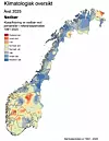 Det meste av Trøndelag og Nord-Noreg kan klassifiserast som «vått» eller «svært vått», med innslag av nokre «ekstremt våte» områder. Nedbøren i resten av Sør-Norge var hovudsakeleg «normal», men med noen mindre «svært tørre» og «svært våte» område.