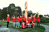– Korps er gøy! samstemmer denne friske gjengen i Førde skulemusikkorps som her har tatt oppstilling på Strando i Førde ved ein av motorsagkunstnar Kenneth Ravn Ottesen sine mange figurar.