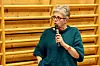 Nesten 70 personar tok turen til det sjette folkemøtet om Dommersnes-planane i Vikebygd bygdahus. Leiar Gunn Vikingstad i Vikebygd Grendautval kjenner på ubehag over at bygda er splitta.