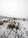 Neste dag fekk me helikopterskyss ned til sivilisasjonen. Samstundes sørgja Røde Kors, andre frivillige, og bondekollegaer frå lokalområdet for å få sauene våre ned til samhegna. Dei gjorde ein fabelaktig innsats, skryt sveibuen. Han har vore i hardt vêr på fjellet før, men denne gongen var det spesielt.