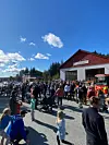 På same markering i Haugesund bidrog også jenter frå Sveio drill med underhaldning, kor dei dansa saman med Bjørnis.