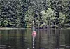 Under vegs på vatnet observerer me også eit anna tiltak som grunneigarlaget har gjennomført. På ei rekke grunnar og skjer er det nemleg sett opp stakar for å utvara båtfolket og avverga grunnstøytingar.