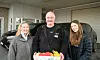 Neste stopp var dagsenteret. Avdelingsleder for Stemhaugen og Straumøygård, Peer Cato Sjursjen, tok imot sammen med medarbeider på senteret, Andreas Eileraas. De møtte jentene med brede smil da fruktkurven ble overrakt.