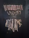 Frå tørkestativa rundt han heng det krok etter krok med salta lammesider, slik alt komande pinnekjøt er blitt hengt sidan Hovdegard og to sambygdingar starta opp gardsmatproduksjon for 16 år sidan. I snitt heng kjøtet her i seks veker før det er klart til å bli saga opp til passelege pinnar. Tørkinga er likevel berre slutten på ein omstendeleg prosess.