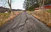 Lenger innover på vegen, forbi huset hennes, er skadene på vegen er tydeligere. Thorsen mener at også dette strekket trenger utbedring, selv om det ikke er parti som brukes for å komme ut på hovedvegen.