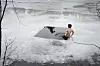Medan han gjer seg klar til sitt daglege bad kan ein sjå varmen dampe frå han, og det diskuterast både erfaringar og preferansar innan utandørs bading.