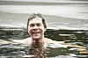 Utan problem glir han ned i vatnet og tar ein dukkert, før han vert liggjande å flyte på ryggen i nokre minuttar.