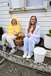 Nysteikt vaffellukt frå kafeen, varm kakao og kaffi var det fleire som nytte godt av. Av dei var Irene Flatnes Haldin (40) og tantebarnet Vilde Flatnes Kristiansen (9) som begge feira bursdagen sin med nysteikt vaffel denne palmesøndagen.