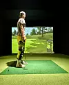 – Simulatoren er veldig realistisk. Når ein speler framfor ein så stor skjerm, er det nesten som å spele ute, seier han, og svingar kølla att.