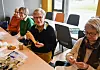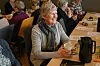 Både allsong, kaffi, loddtrekking, gode samtalar og handarbeid inngår i dei månadlege møta på soknehuset. Dei strikkeglade damene gleder seg over å kunna møtast som normalt att etter to år med sosiale avgrensingar.