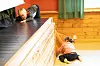 Heilt fremst i storsalen, føre lerretet, har dei lagt ut matter og saccosekkar som barna kan ligge på om stolane vert for keisame.