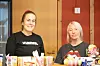 Vibeke Helgesen og Linda Sæverhagen står saman ved disken til kiosken i Førde samfunnshus. Dei er to av tre styremedlemmer i Førde Ungdomslag, og fyllar på snop og snacks medan to barn klatrar og morar seg rundt dei.