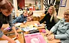 Midt inne i grendastova, omkransa av utstillarar, loddsal var det dekka for pause og prat. Her sat mellom anna Jorunn Sekse, Ellen Karin Halstensen og Karin Furubotn som var samstemde i at julemessa var eit høgdepunkt.