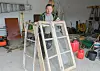 — Eg har prøvd å halda på mest mogleg av det originale preget på vindaugo, seier Mariusz Buryj, som er snikkar og vaktmeister i kommunen.