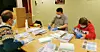 Torsdag kveld var tre mållagsmedlemmer og to av barna deira med og pakka kalendrane inn med i zip-lock-posar.