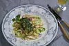 3/4 kilo godt utvannet klippfisk trekkes i 10 min i kokende vann.