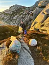 Dugnadsgjengen på Flokehyttene plukket søppel på kyststien. Veldig bra at det minker med søppel for hvert år.Foto: Svanhild Storstein