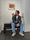 Etter ein ringerunde i bygda blei talarstolen funnen i ein konteinar på fiskehamna. No heng han på veggen i Berges fotoutstilling.