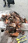 Leiaren for Sveio jakt- fiske og naturvernforbund,Vidar Høyland, har med seg 36 labbar i ein plastpose. Bjørge noterer fire dyr på revejegeren frå Straumøy, og fem på jaktkameraten hans, Bjørn Christian Kallevik.