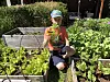 – Heime i Russland kan det vera tørt lenge og svært varmt, og folk kan slita med parasittar som angrip planter, men her er det ikkje så mykje av det slaget. Det me opplever mest her er bladlus, fortel Marina. Botemiddelet for å bli kvitt lusa er å ha på grønsåpevatn og sprayansvarleg er Mikkel, ei oppgåve han tek på største alvor, – og glede.