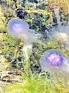 Desse manetene er unge brennmaneter, og det kan sjå ut som at det er ei blanding av to artar: både raude og blå brennmaneter.