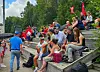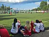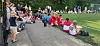 Både sveibuar heimefrå og utflytta patriotar var på plass for å støtte Sveio-laga i raudt under årets Norway Cup.Foto: Irene Flatnes Haldin