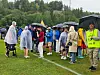 Heiagjengen frå Sveio var godt førebudd på regnvêret under kampane på Rustad.Foto: Irene Flatnes Haldin
