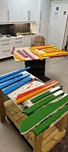 Stolen har han snekra og måla sjølv, heime i garasjen.