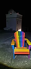 Ryvarden har fått ein ny attraksjon. Natt til julaftan dukka det opp ein solid trestol i regnbogefargar ved fyret.