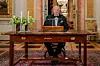– Tidlegare stod han oppreist, men det skapte eit problem med talekorta. Han heldt dei i brysthøgde eller lågare, og måtte sjå ned på korta heile tida. Då mista han noko av den nødvendige nærleiken til sjåaren. Det dei har begynt med no er at han sit ved eit bord og har eit skråplan der han har korta. Det er ein meir formell setting, men skapar likevel meir nærleik – sidan han kan sjå meir i kamera.
