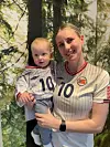 Alfred Pedersen Lokna og Cecilie Pedersen med landslagsdrakt fra VM i fotball for kvinner i Tyskland 2011.Foto: Privat