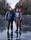 Kameratane Tor Kristian Jacobsen og Sigve Opedal på trygg is på Storavatnet i Auklandshamn torsdag 5. februar.Foto: Elisabeth Hauge Bakke