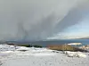 Bilder fra Hoien på Tjernagel i dag 23. November. Det blir meir snø, ei byge er på veg over fjorden.