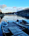 Vinterbilder frå Auklandshamn. Vintersol over Skinntjødnane.