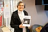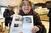 Bjørg Halleraker Einarsen set seg ned ved sidan av Bjelland og får seg eit eksemplar.