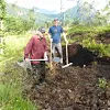 Harald Strømmegjerde fortel at han brukar torv frå eit område eit par kilometer frå garden i produksjonen. Torva frå Riksheim er spesielt godt eigna, sidan ho ligg på det som var den gamle marine grensa, og ho er ikkje like kompakt som torva som veks høgare oppe i lia.