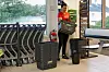 Ved handlekorgene står Wioleta Stachurska med hanskar, klut og vaskebøtte. Ho jobbar seg nedover stabelen med små korger. Hankane blir vaska, over, under og på sida. Dette er ein del av dei daglege reinhaldsrutinane.