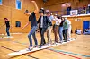 Torsdag var siste besøksdag. Då vart opphaldet i Sveio avslutta med leik og aktivitetar i idrettshallen i Vigdartun. Der sto mellom anna slalåm på rullebrett og skiskyting på programmet. Og stafett på lange ski – spesialbygd for seks personar– utfordra elevane sine samarbeidsevne litt ekstra.
