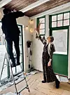 Ho kastar eit rastlaust blikk innover i orangeriet, og på dei flekkete takbjelkane med fargeprøver. Linoljebasert emulsjonsmåling krev ein særskild teknikk, forklarte ho då ho viste rundt tidlegare på føremiddagen. Det var difor ho måla mest mogleg av dei enorme veggflatene i Nerdrum-museet sjølv. Ja, og for å halde utgiftene nede.