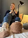 I hylla ved sida av ho på arbeidsrommet ligg det stablar med ferdigstrikka sokkepar side om side med garnnøste i ulike fargar. Det er gjerne her hobbybokforfattaren og influensaren frå Naustdal sit når ho utviklar og strikkar på det som skal bli til 30 nye sokkeoppskrifter i den neste strikkeboka hennar. Tidlegare har ho mellom anna gjeve ut bok med eigendesigna vottar. Arbeidet krev at Grane må teste oppskrifter og ofte strikke fleire par med same mønster. Då går det med ein del garn.
